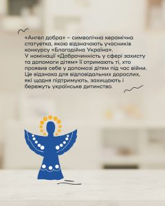 Це також про підтримку фізичного і ментального здоров’я, реабілітаційні програми, освітні можливості, творчі гуртки, спортивні заняття, безпечні простори для розвитку і спілкування. Про тих, хто допомагає дітям, які втратили дім, пережили окупацію, розлуку з батьками чи складні випробування війни, знову повірити у себе і своє майбутнє.